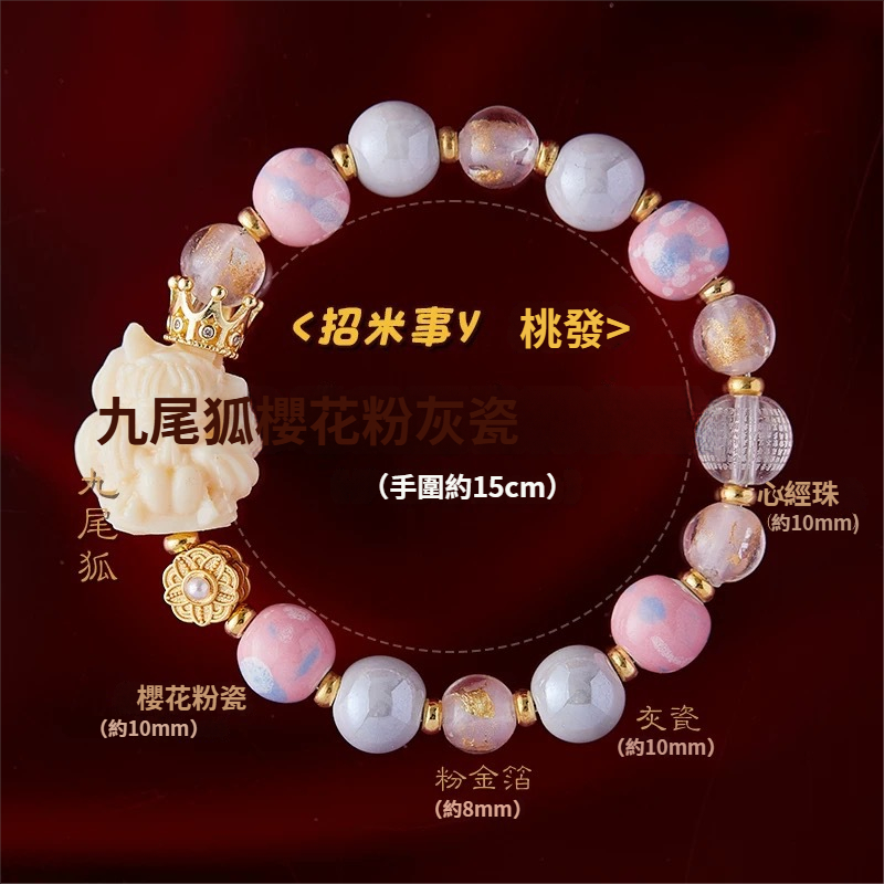 香灰瓷鳳九狐手串粉瓷金箔琉璃手鍊國潮宮廷風轉運粉晶廟同款