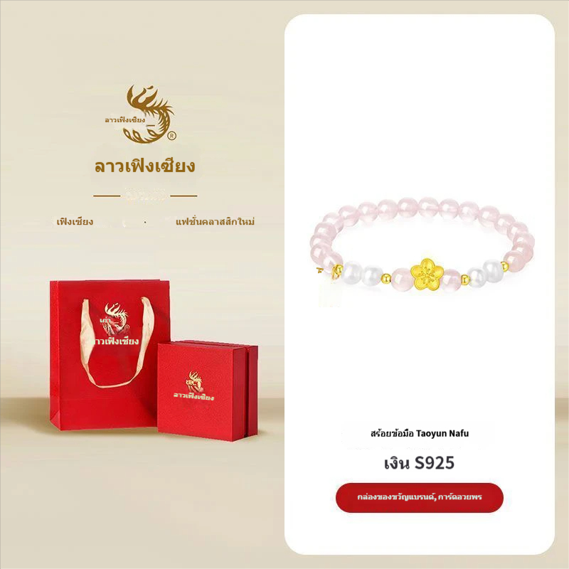 สร้อยข้อมือเงินสเตอร์ลิงคริสตัลสีชมพูพีชบลอสซัมลัคกี้