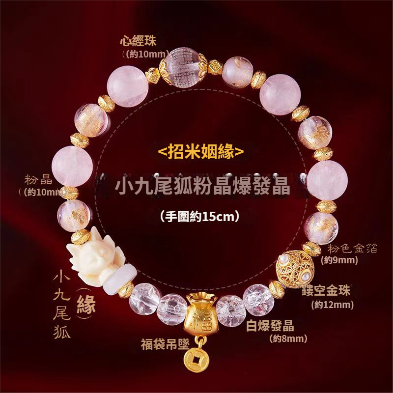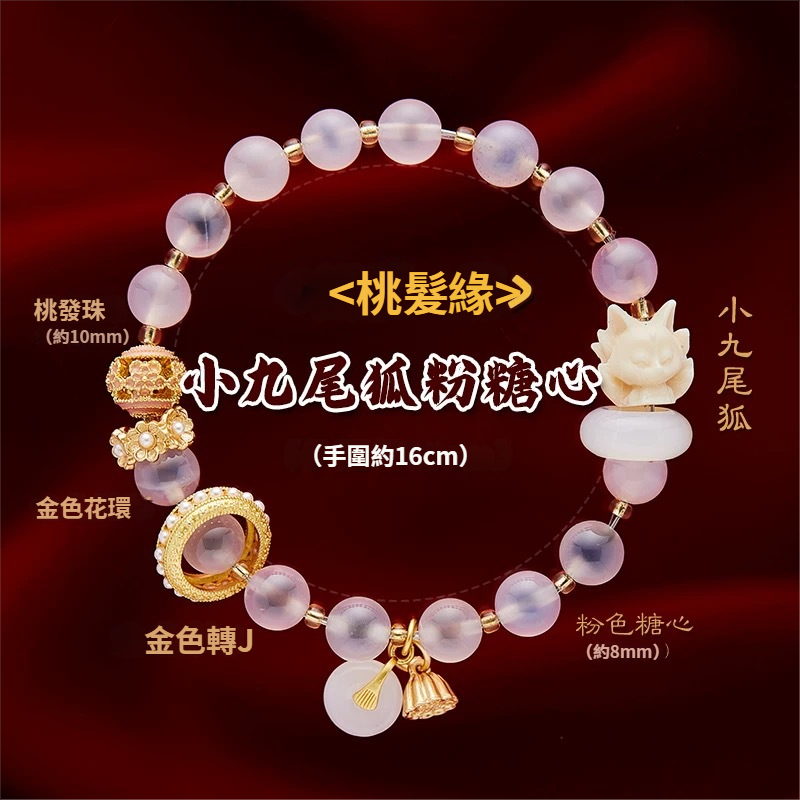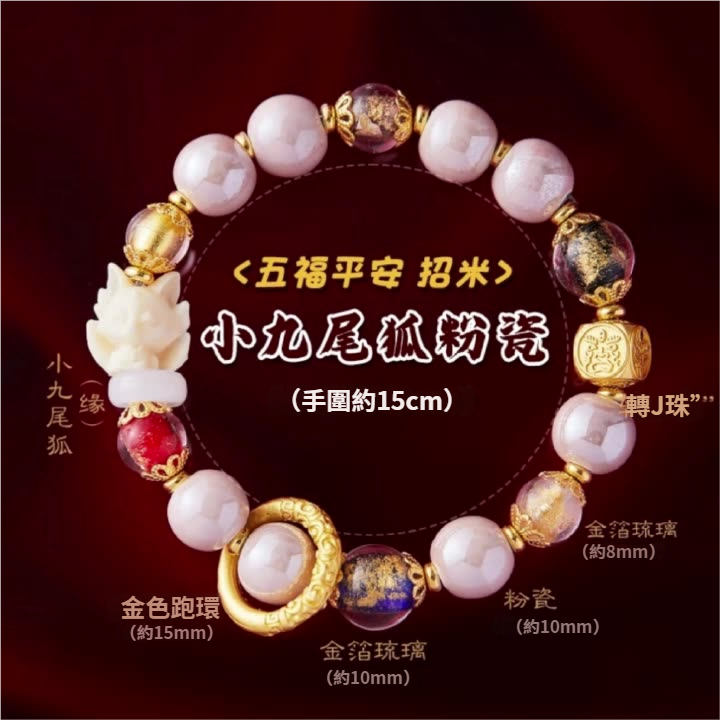 鳳九狐造型靈動討喜,藏著招好人緣、旺運勢的小心思;粉晶與粉瓷暈開少女感,宮廷紋路低調顯質感,不管搭大學制服、日常T恤還是約會小洋裝都超合適。